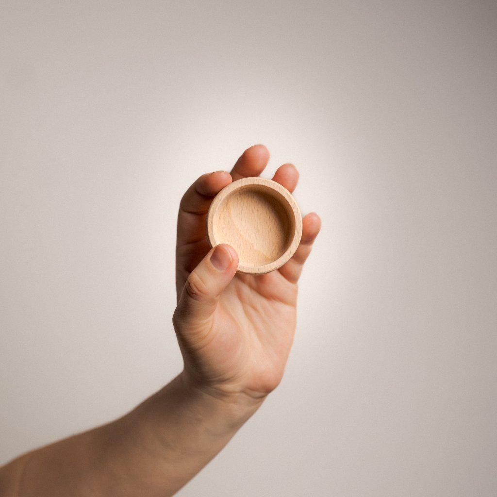 Maska se musí v něčem míchat. Plast? Ne. Kuchyňské misky? Moc velké. Tahle je akorát. Malá dřevěná miska přesně na jednu porci masky. Nic víc, nic míň.